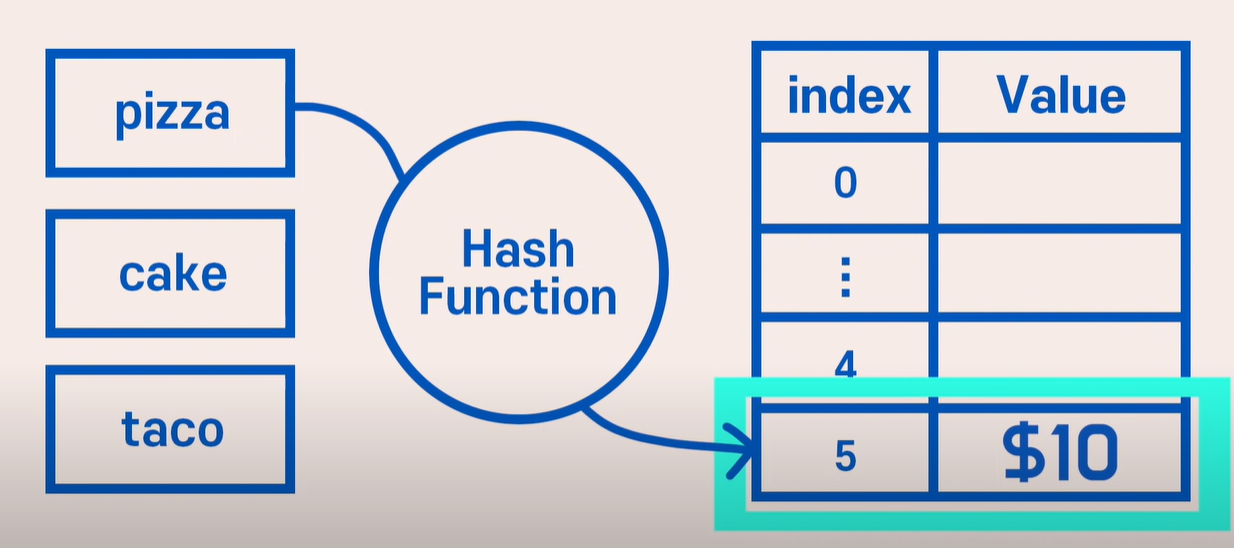 이렇게 해시 테이블의 키를 number 자료형으로 만드는 어떤 함수를 hash function, 해시 함수라고 한다.