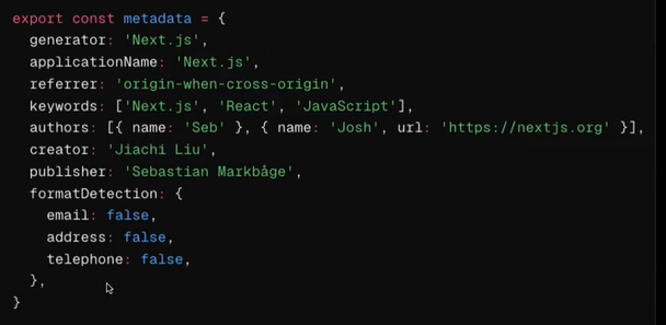 - page나 layout 에서만 메타데이터를 내보낼 수 있다.