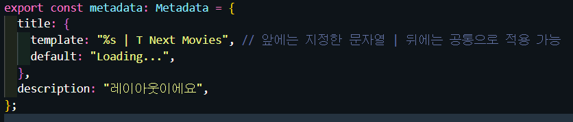 - 메타 데이터는 병합된다(다른 page에서는 title, layout에는 description 사용할 경우 병합되어 나옴)