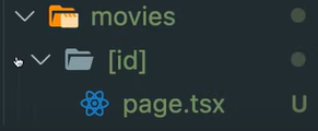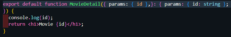 폴더명/[id] 폴더 생성/page.tsx 으로 동적 라우팅 가능 -> [ ] 대괄호 필수 (리액트 동적라우팅 /movie/:id와 같지만 hook이 필요 없다.)