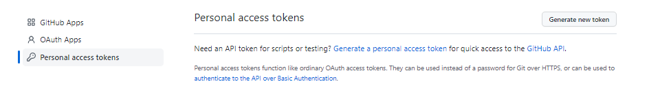 1. Setting > 좌측 Developer settings > Personal access tokens > Generate new token