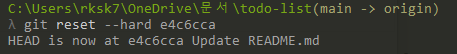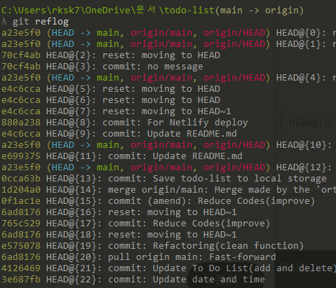 먼저 git reflog 명령어로 그동안 기록해온 목록들을 가져온다.