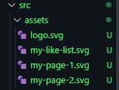 (1) 우선 리액트 프로젝트 파일에서 src 내부에 assects파일을 생성해 svg파일을 위치시킨다.