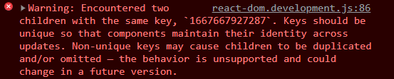 고유의 key값들을 부여하기 위해 Date.now()함수를 사용했지만, 동시다발적으로 여러개의 컴포넌트를 한번에 return하다보니 key값이 중복되는 상황이 발생한 것.