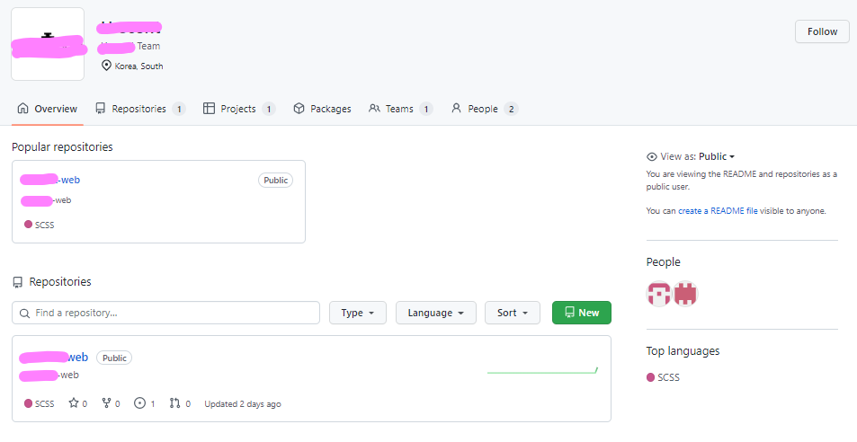해당 아이콘을 클릭하면 해당 조직의 repo를 확인하고 관리할 수 있다.