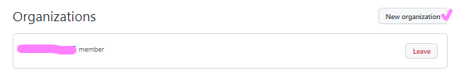 우선 Github에서 협업용 단체(Organization)를 생성한다. 현업에서는 주로 Organization을 이용하여 협업을 진행한다고 한다. 내 프로필을 클릭하여 > your organizations 에서 확인할 수 있다.