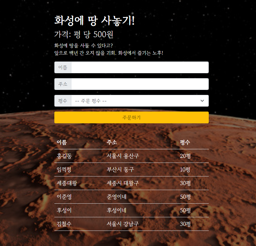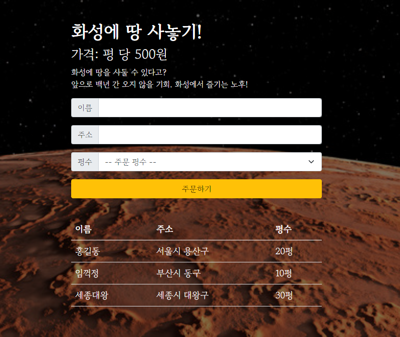 🦄 화성땅 공동구매 프로젝트 - Flask 프레임워크 연습(서버, DB)