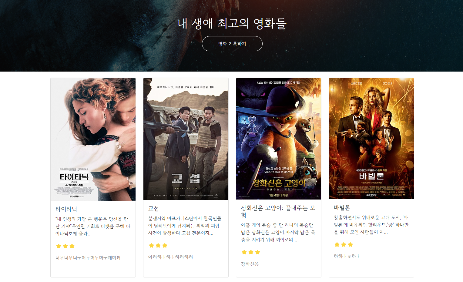 가져와 DB에 저장하기, 사용자가 영화를 추가하면 window를 load하여 DB에 저장된 영화들의 정보로 포스트들을 만들어
